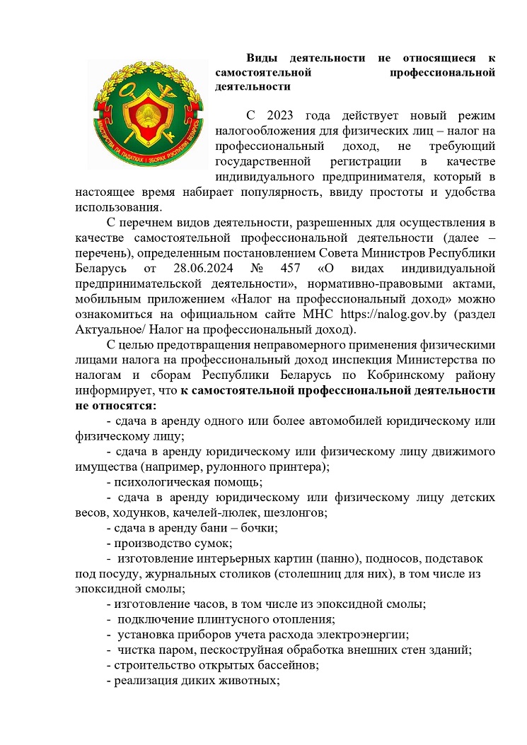 Виды деятельности не относящиеся к самостоятельной профессиональной деятельности