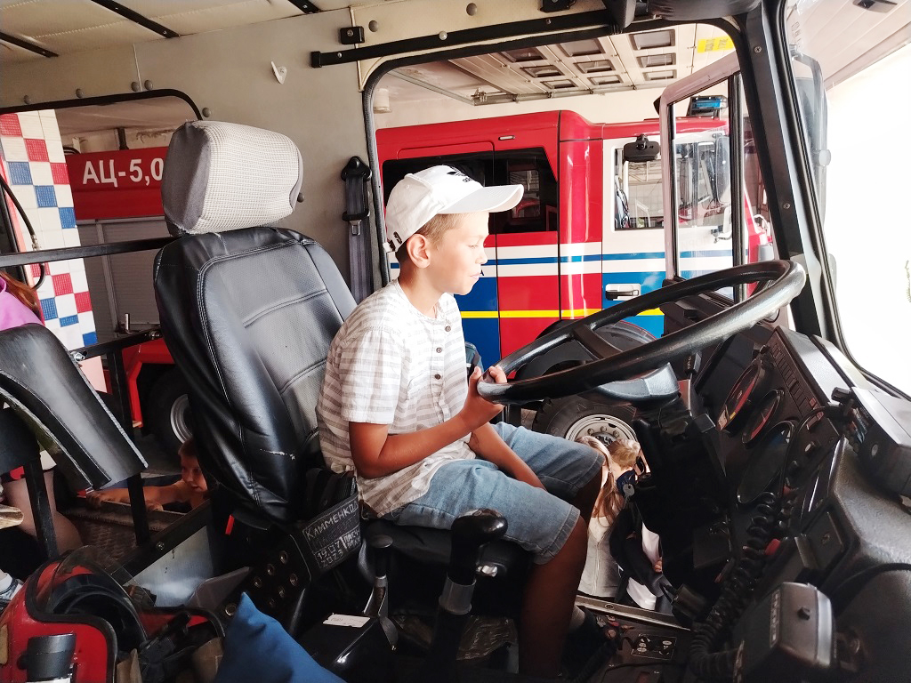 чрезвычайные происшествия и обеспечивает их безопасность при тушении пожаров. Мальчишки и девчонки смогли не только посидеть в пожарных автомобилях, но и сделать памятные