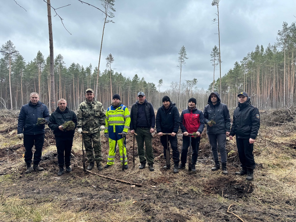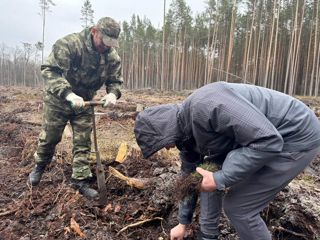 высажено 4300 саженцев сосны на площади 1, 4 га.