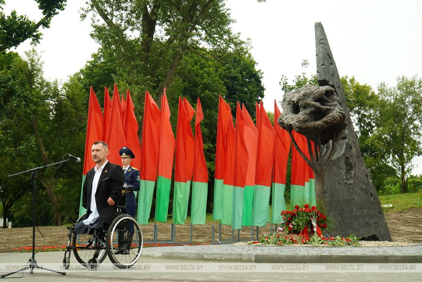 Паралімпіец адзначыў, што беларусы праявілі адзінства і пераемнасць, сабраўшы для помніка такую колькасць манет. "Дзякуй усім, хто сёння тут урачыста адкрывае гэта знакавае месца ў гонар нашых дзядоў і прадзедаў, нашых герояў, якія ў той страшнай вайне змаглі адстаяць нашу зямлю, магчымасць жыць нашаму народу на планеце Зямля. Мы - сучаснае пакаленне - помнім, шануем і, вядома ж, павінны перадаць нешта вельмі важнае, каштоўнае нашым дзецям, унукам, якім далей тут жыць і змагацца. Мы сутыкаемся і цяпер з беспрэцэдэнтным націскам звонку", - адзначыў ён.