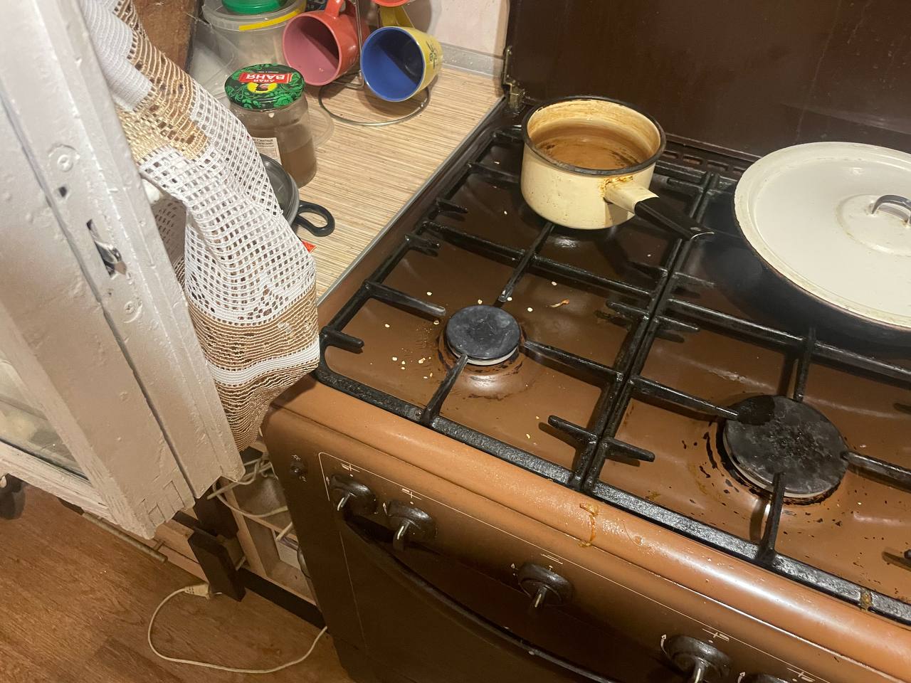 газовой плите, подгорание потушено водой с водопроводного крана, открыты окна