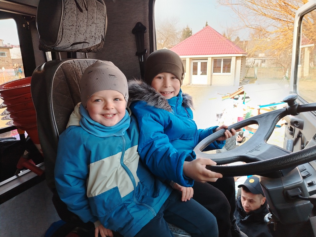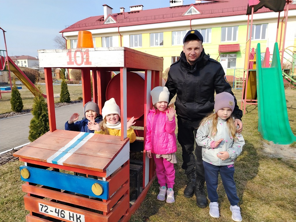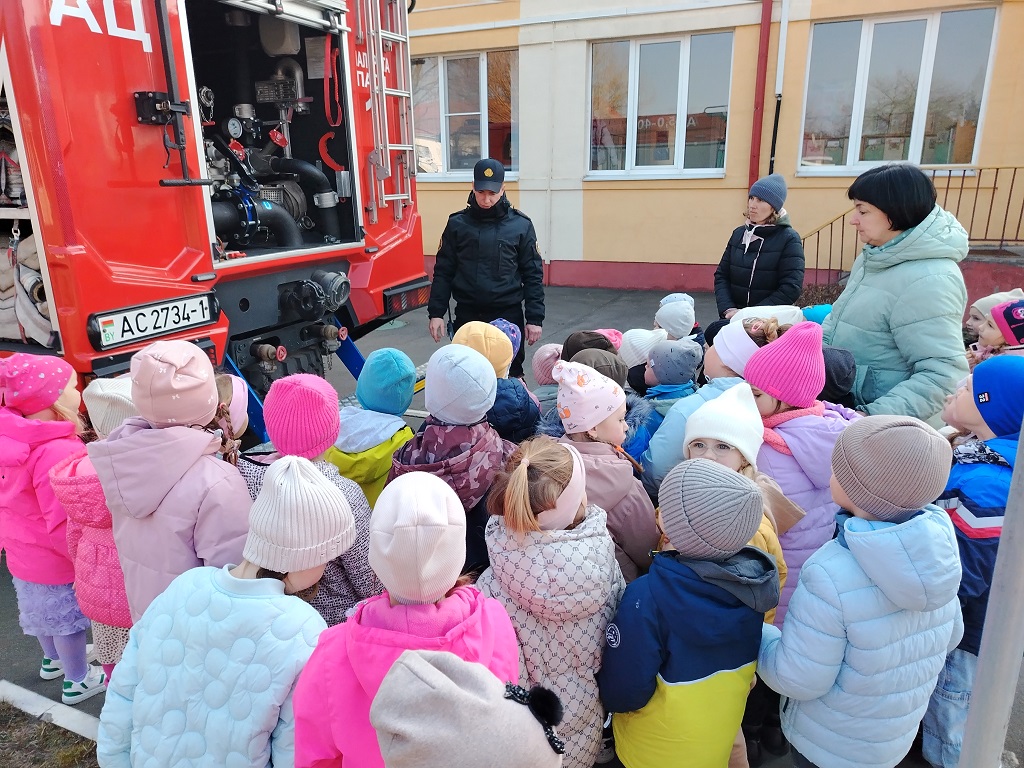 Начальник дежурной смены Дмитрий Любчик познакомил ребят с пожарной машиной и всем специальным оборудованием, которое помогает спасателям в работе.Мальчишки и девчонки смогли рассмотреть пожарный автомобиль изнутри, увидеть, как устроены насосы, рукава, баллоны с воздухом.