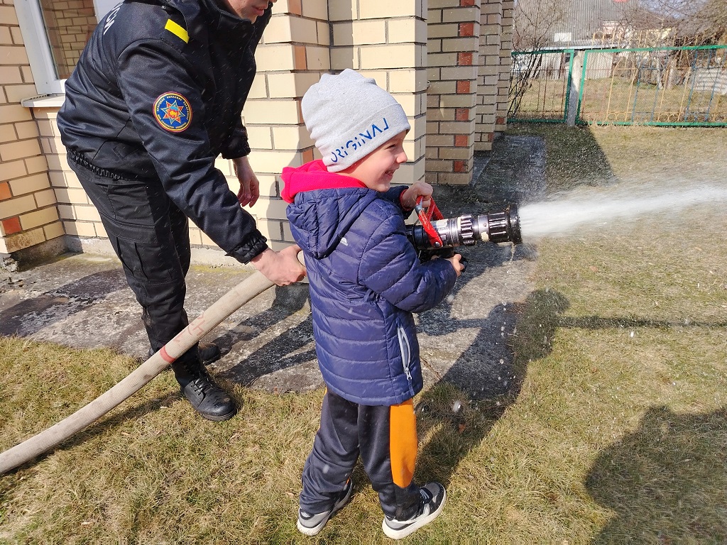 Малоритские спасатели приехали к ребятам на пожарной машине.
