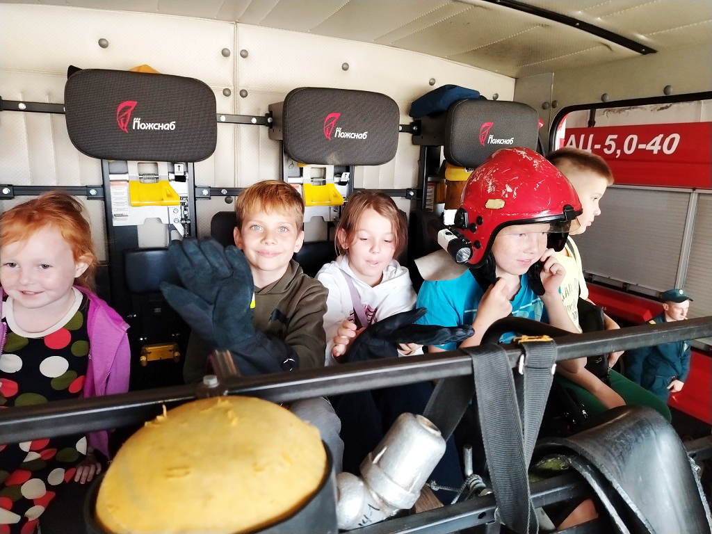 чрезвычайные происшествия и обеспечивает их безопасность при тушении пожаров. Мальчишки и девчонки смогли не только посидеть в пожарных автомобилях, но и сделать памятные