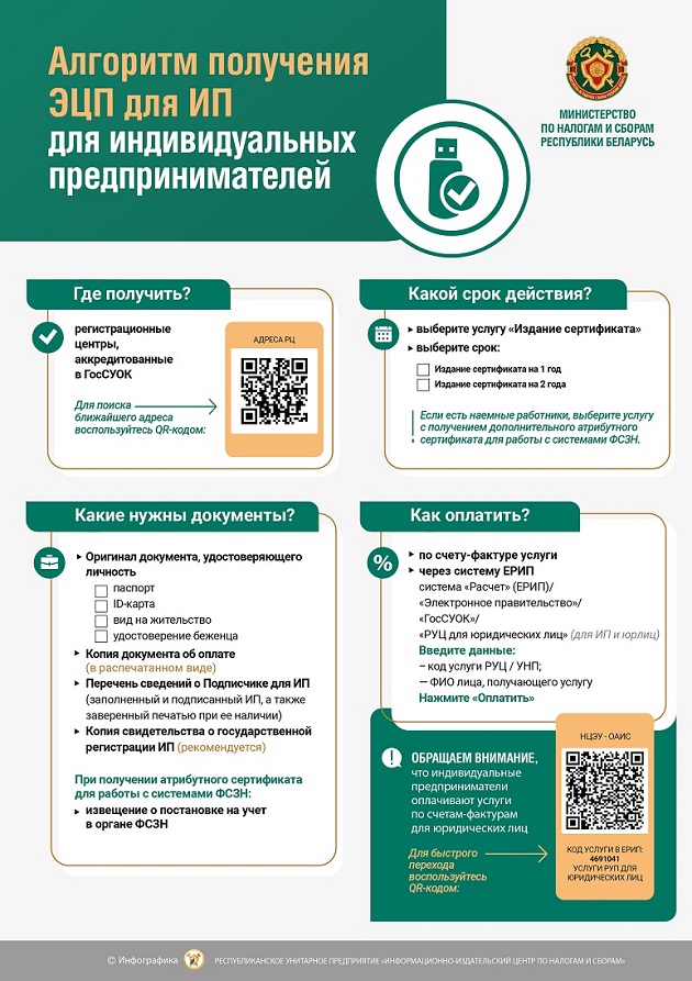 Алгоритм получения электронно-цифровой подписи для индивидуальных предпринимателей