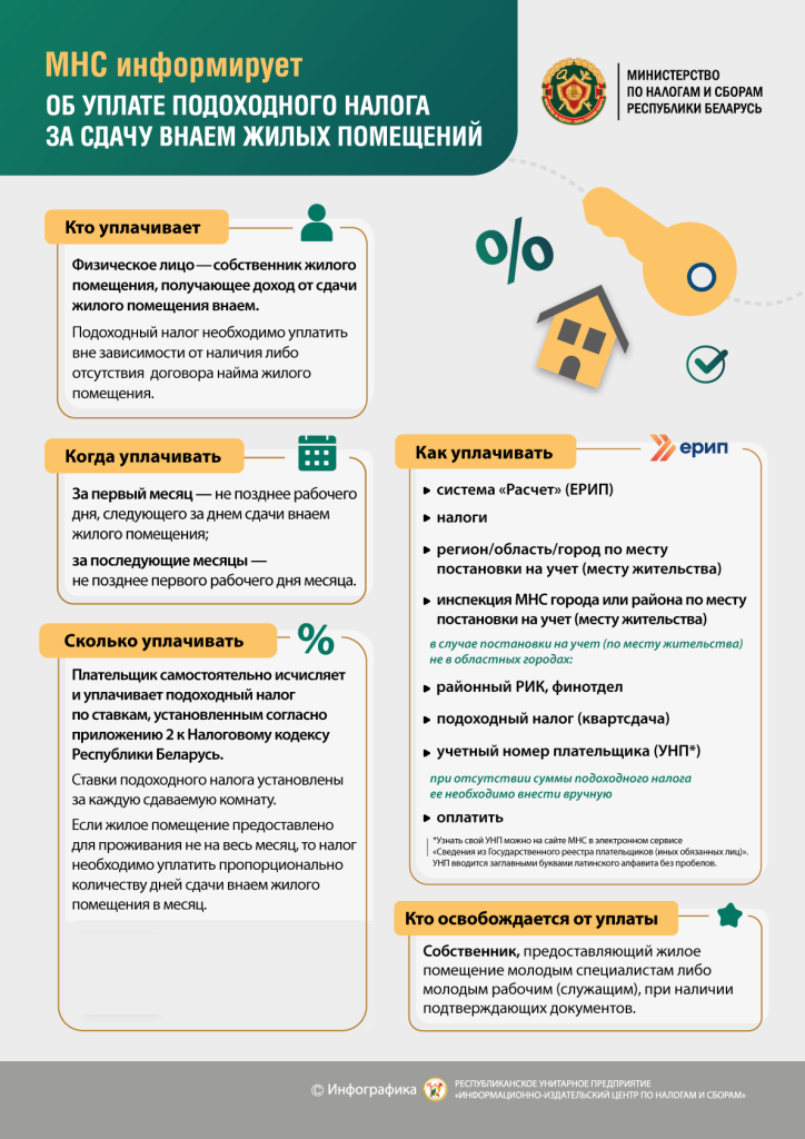 МНС информирует об уплате подоходного налога за сдачу внаем жилых помещений