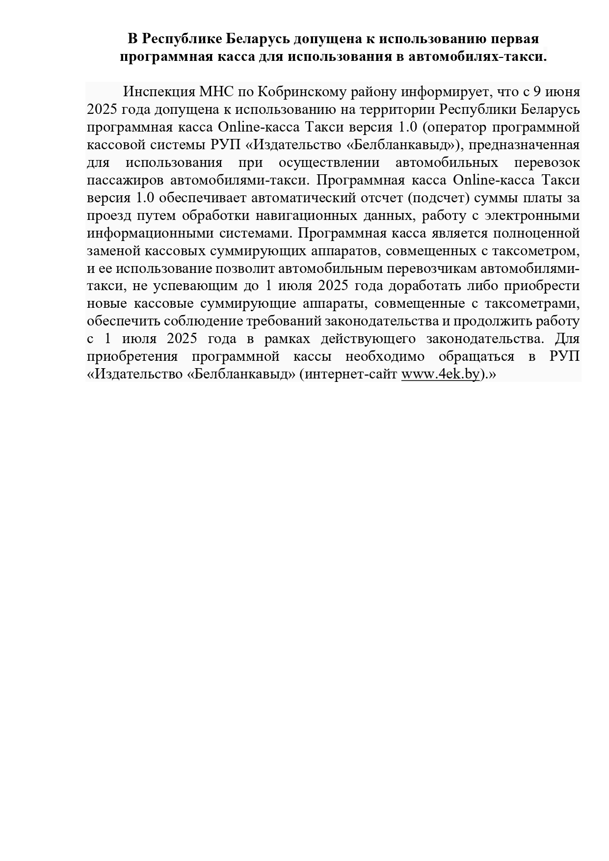 В Республике Беларусь допущена к использованию первая программная касса для использования в автомобилях-такси
