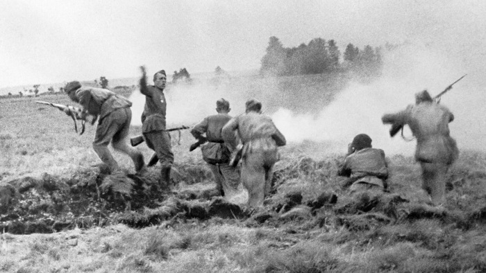 Войска 3-го Белорусского фронта развивали успешное наступление. Северо-западнее Минска наши части, действующие в трудно проходимой лесисто-болотистой местности, вышли к реке Нарочь. Н-ская кавалерийская часть окружила в лесу большой отряд отступавших немцев. B бою, продолжавшемся сутки, конники наголову разбили противника. Убито свыше 1.200 немецких солдат и офицеров. Остатки отряда в количестве 400 человек сдались в плен. Захвачено 280 автомашин и 10 орудий.