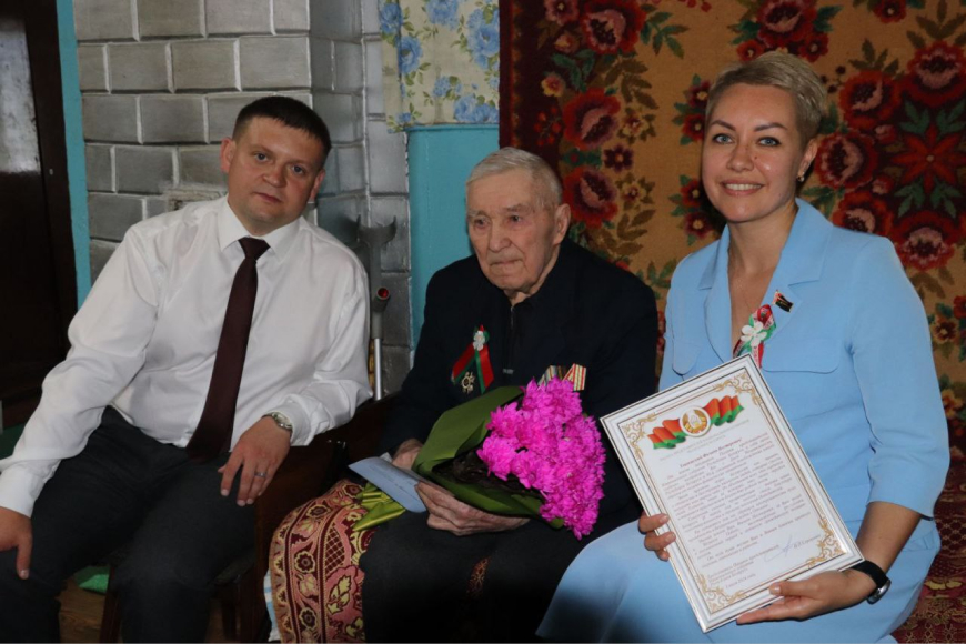 В юбилейный день 80-летия освобождения Беларуси от немецко-фашистских захватчиков и в главный праздник страны – День Независимости, руководство района – председатель Малоритского райисполкома Александр Корж и председатель Малоритского районного Совета депутатов Эдуард Кондерешко вместе с депутатом Палаты представителей Национального собрания Республики Беларусь Екатериной Поздяйкиной посетили с поздравлениями и подарками участников Великой Отечественной войны Марию Петровну Струк из Малориты и Филиппа Нестеровича Дзибука из деревни Бродятин.