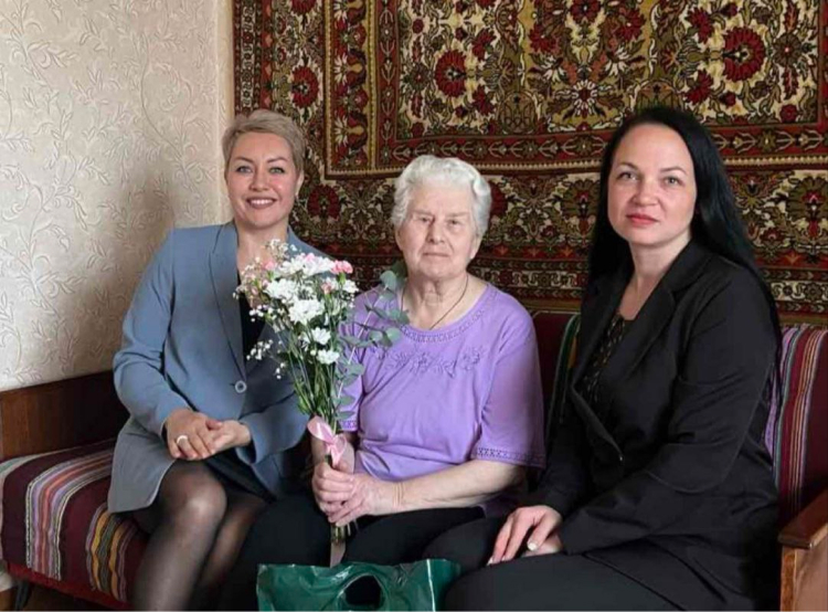 С цветами и подарками в доме малолетней узницы фашизма Ольги Андреевны Суббота побывали Депутат Палаты представителей Национального собрания Республики Беларусь Vlll созыва по Беловежскому избирательному округу N 8 Екатерина Поздяйкина и председатель райкома профсоюза работников АПК Наталия Губаревич.