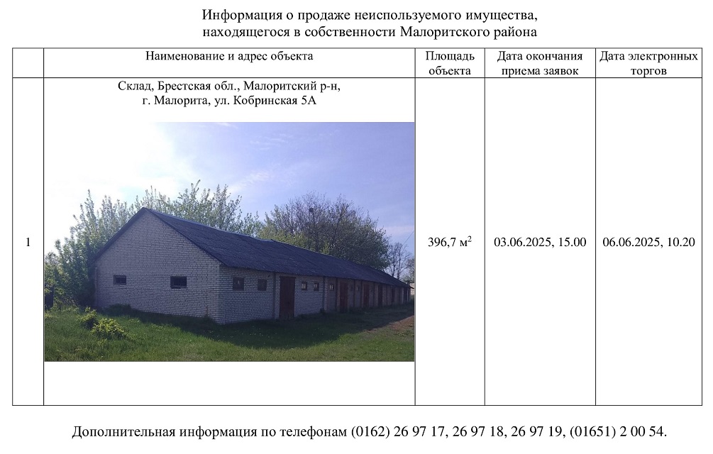 Информация о продаже неиспользуемого имущества, находящегося в собственности Малоритского района