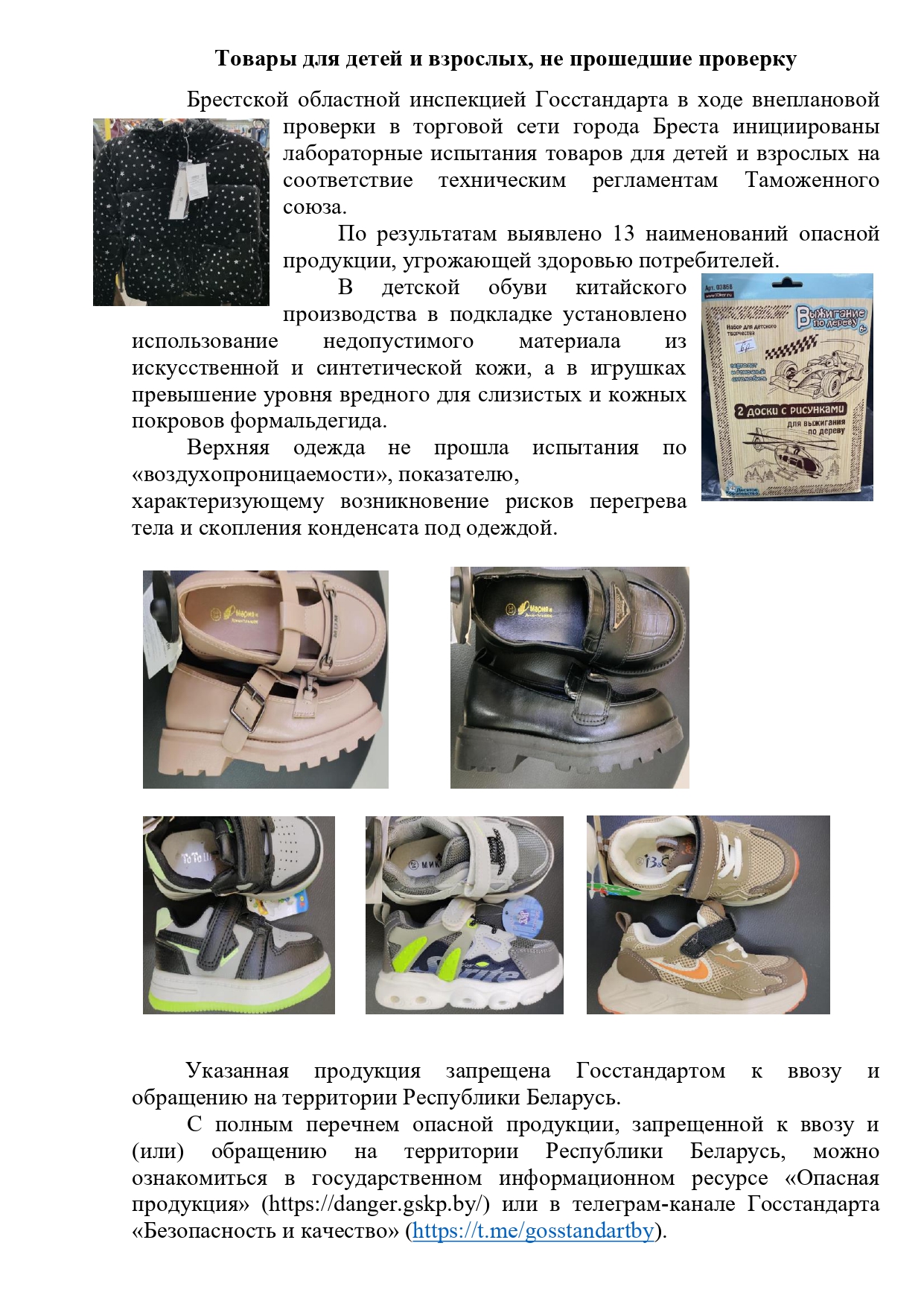 Товары для детей и взрослых, не прошедшие проверку