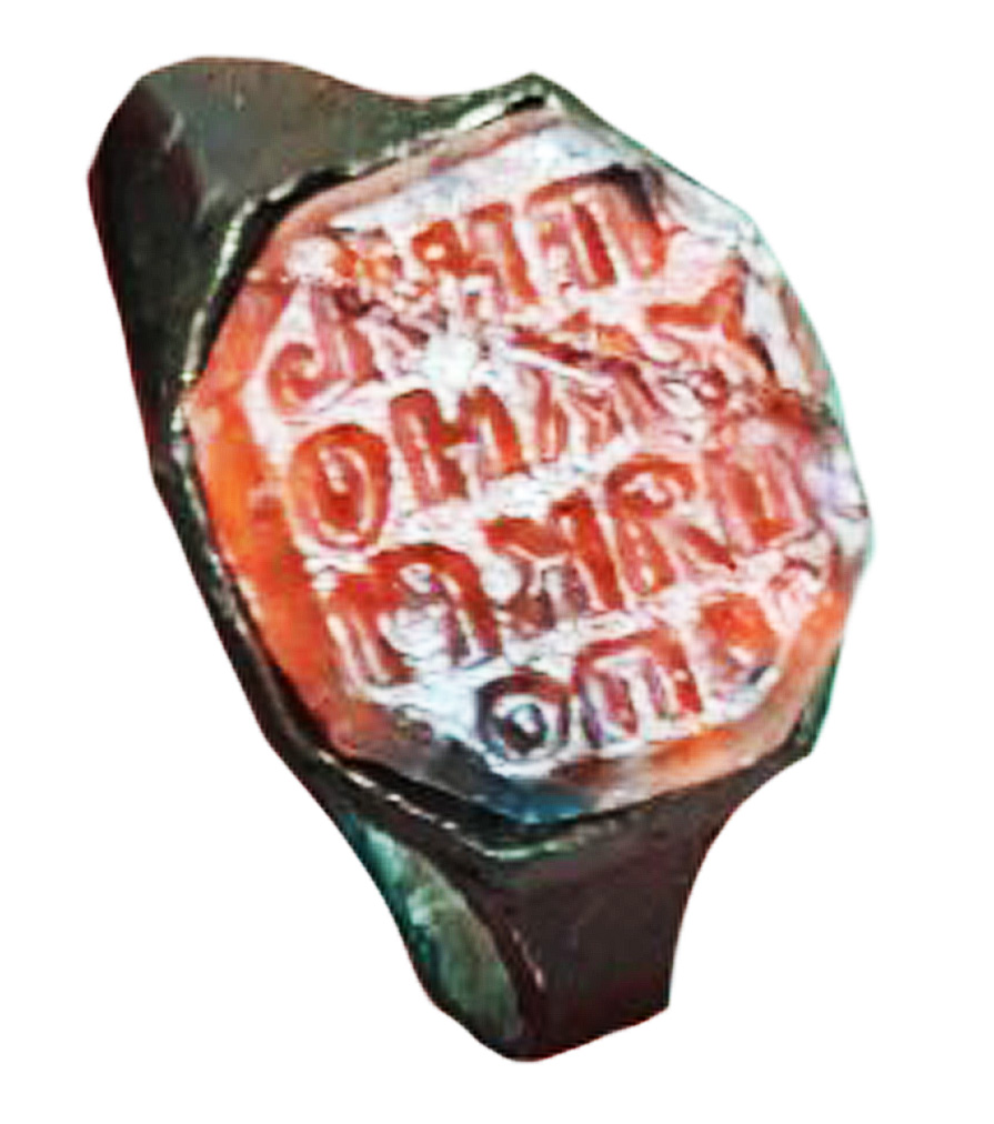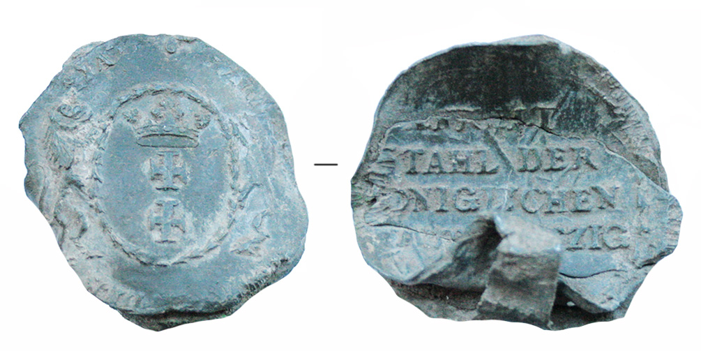 з выявамі княжацкіх знакаў, святых, літар. Адна з пломб з выявай мяча належала