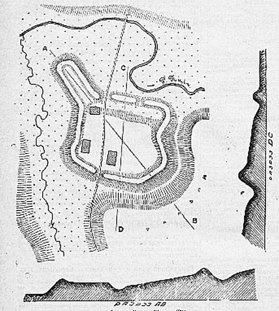 паўднёва-ўсходняга боку і аддзяляецца ад яго ровам. Яго плошча складае