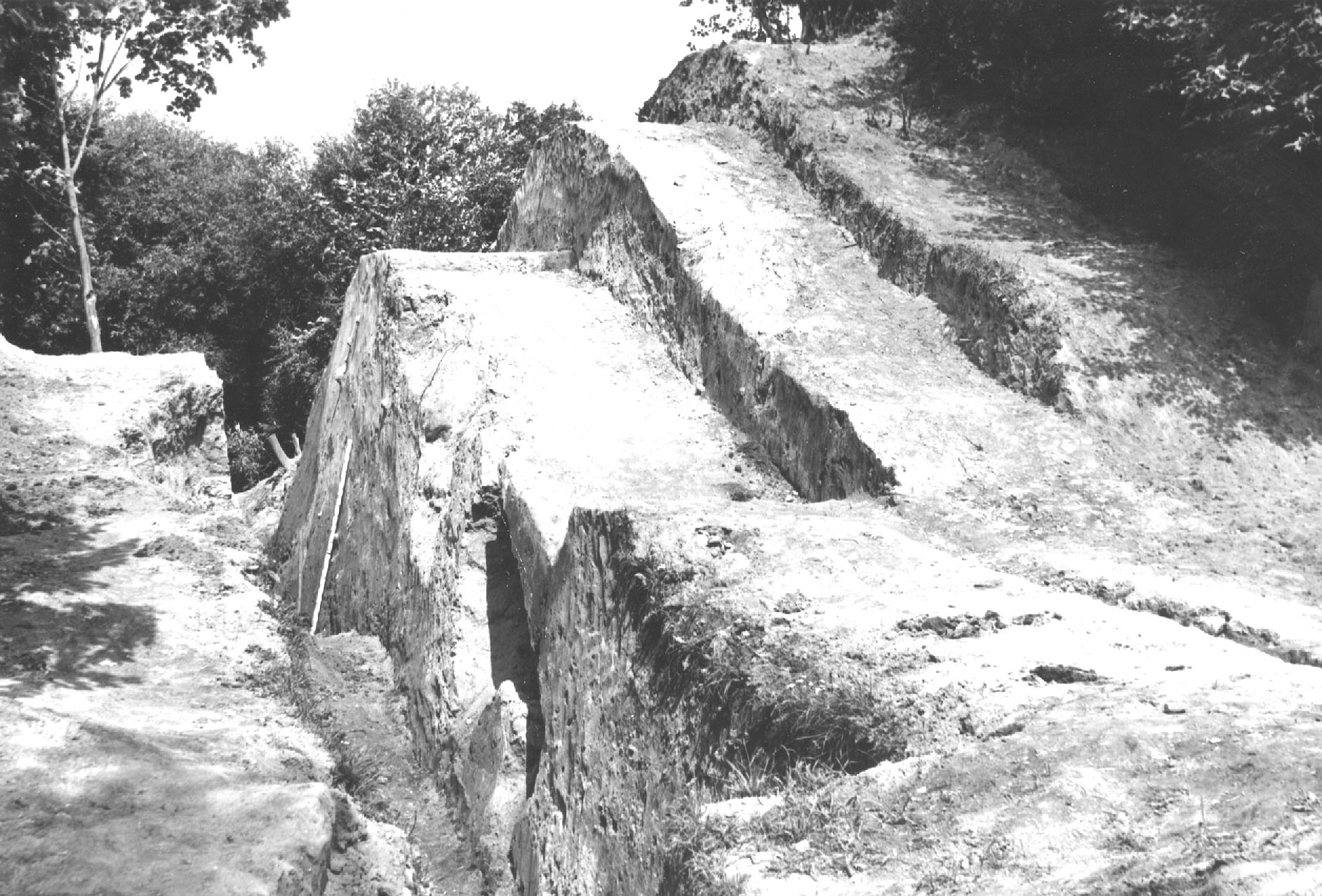 заходняга профіля паўднёвага разрыву вала вялікага гарадзішча. З 1975 па 1983